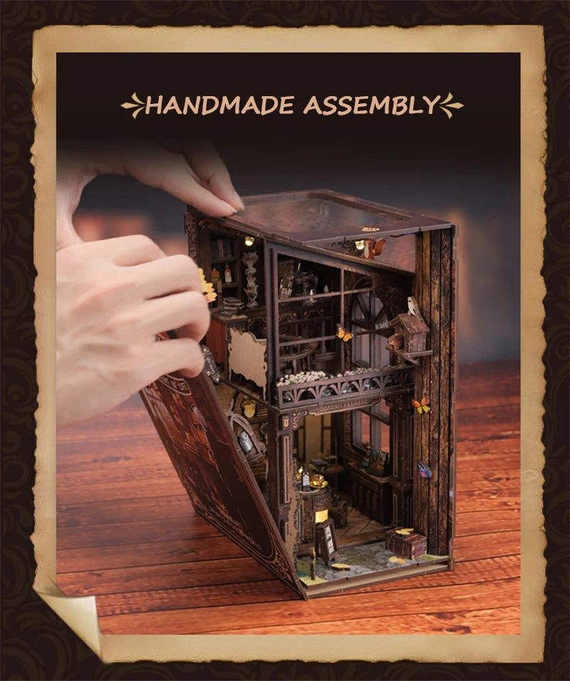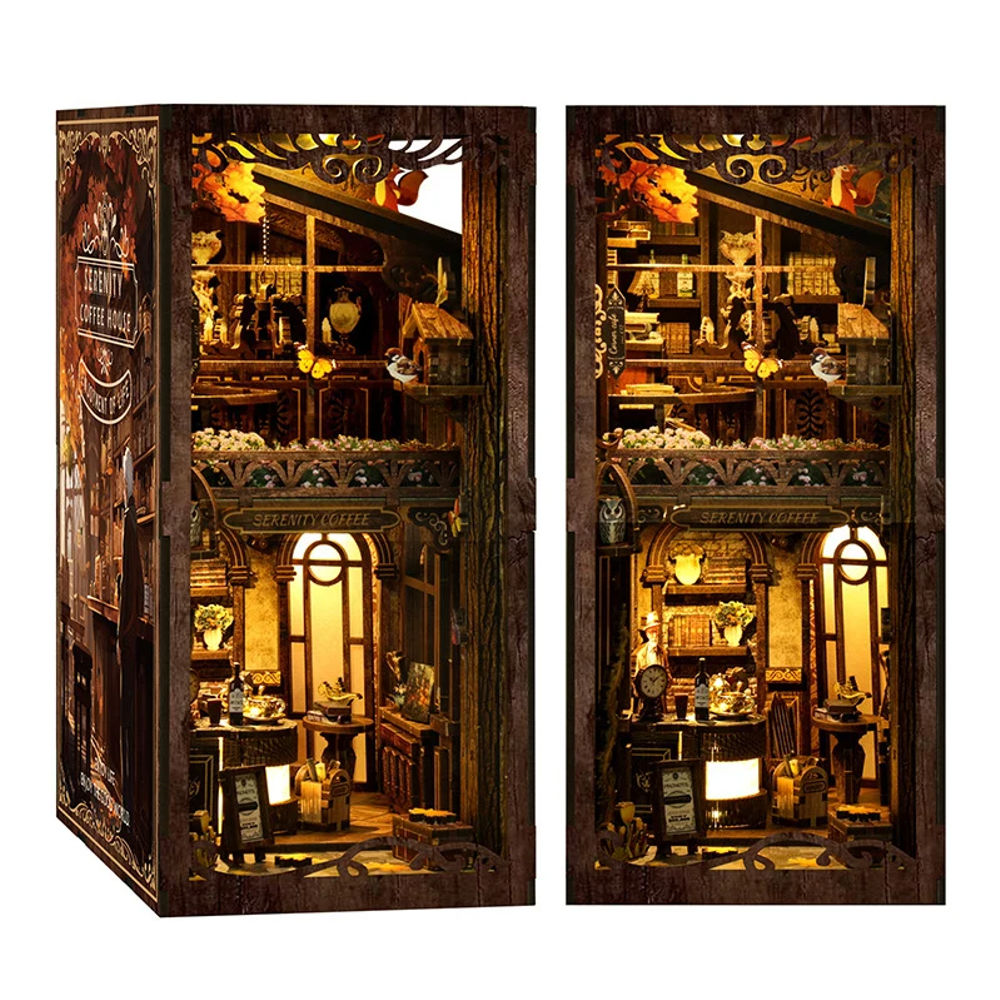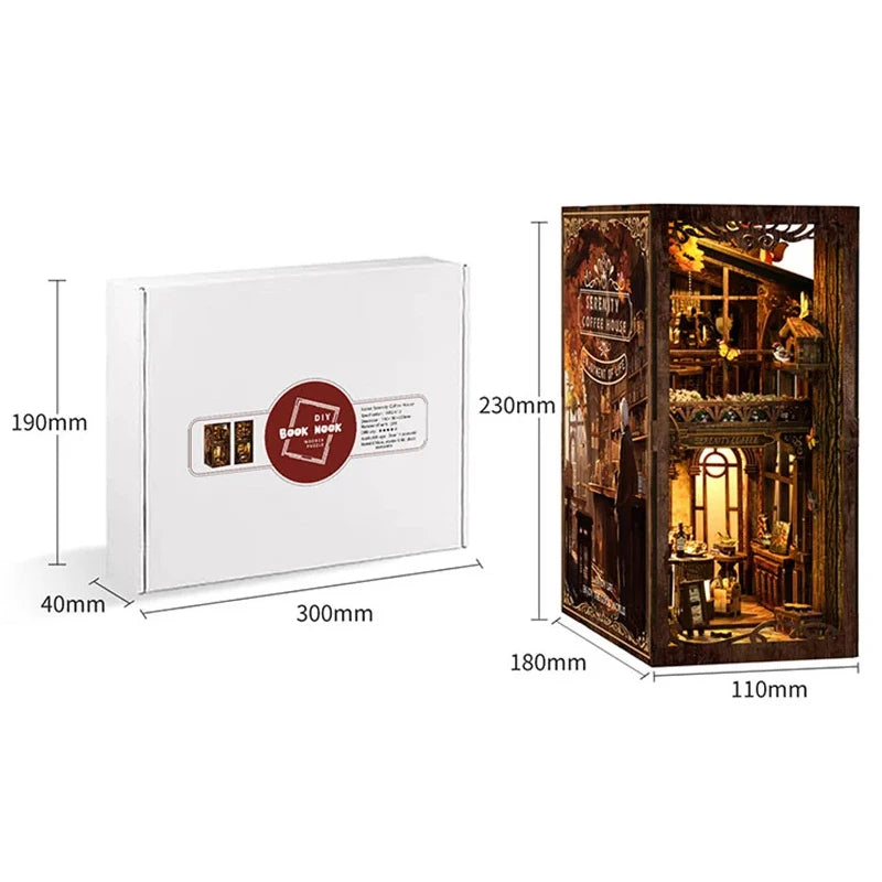 Bring charm and creativity to your bookshelf with the DIY Wooden Book Nook, a retro-inspired miniature coffee house that adds warmth and character to any space. Perfect for home, office, or study decor.