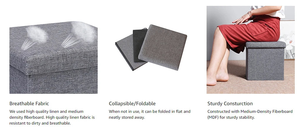 • Multipurpose Design: Functions as a stool, footrest, storage box, or extra seating